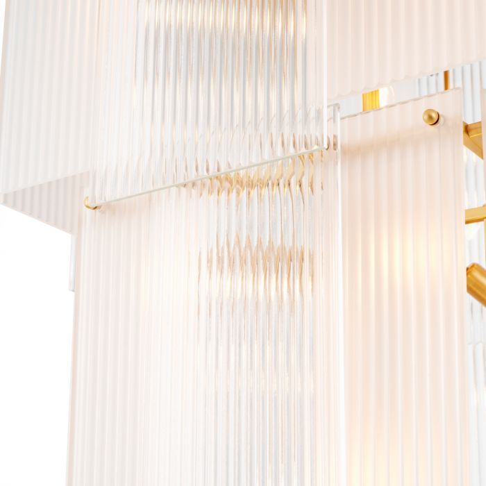 Lámpara de araña Giardano de cristal transparente y esmerilado con acabado en latón antiguo.